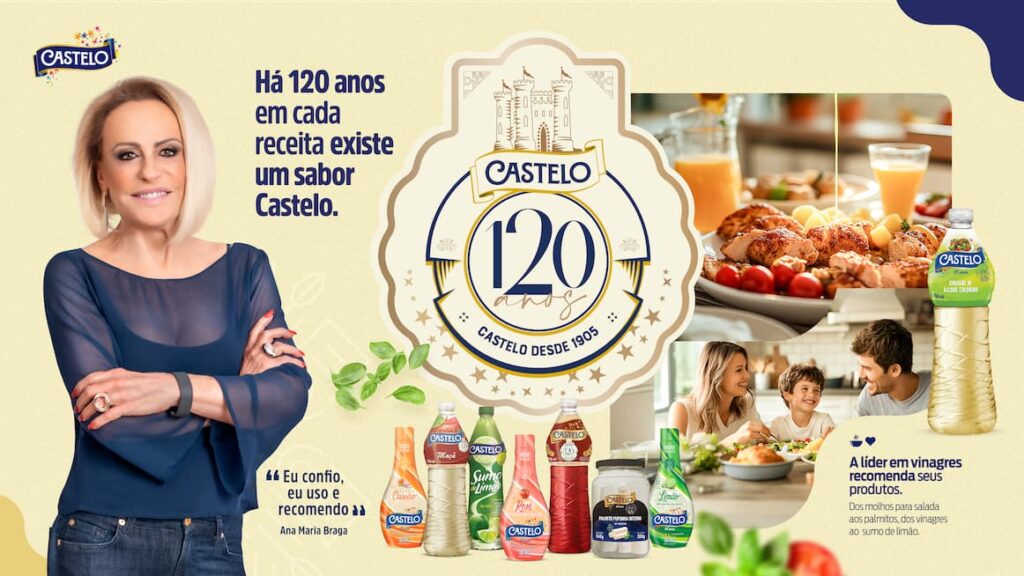 Entre as ativações, está a ação “Castelo de Norte a Sul” com influenciadores de todo o Brasil. As criações serão publicadas semanalmente nas redes sociais da marca e reunidas em um e-book gratuito. Outra frente é o e-book digital “120 dicas com Vinagre Castelo”, que reforça a versatilidade do produto que consolidou a liderança da Castelo.