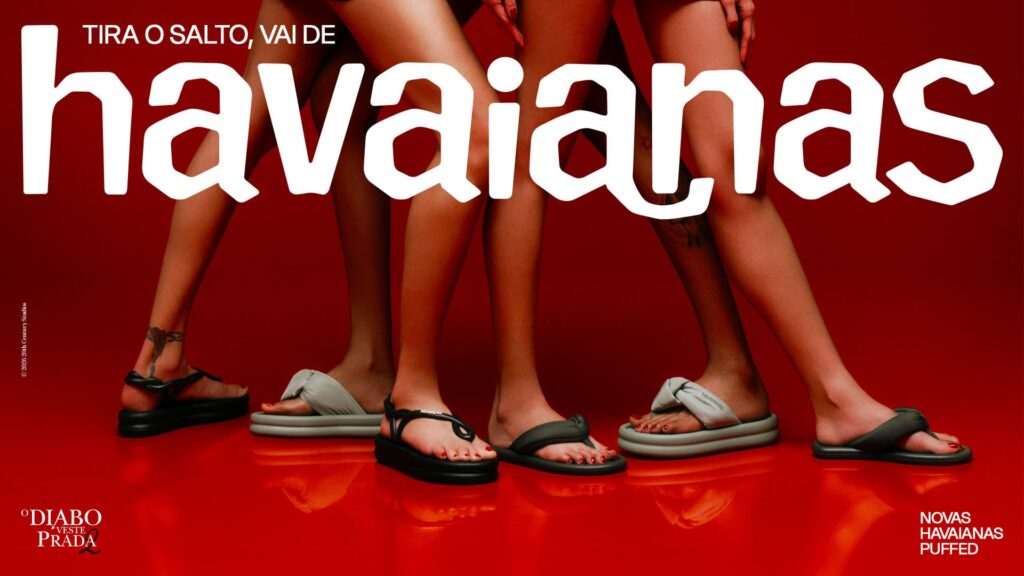 Com o conceito “Tira o salto, vai de Havaianas”, a comunicação propõe uma leitura mais direta e inesperada desse universo, inserindo o produto em um espaço tradicionalmente dominado por outros códigos de estilo.