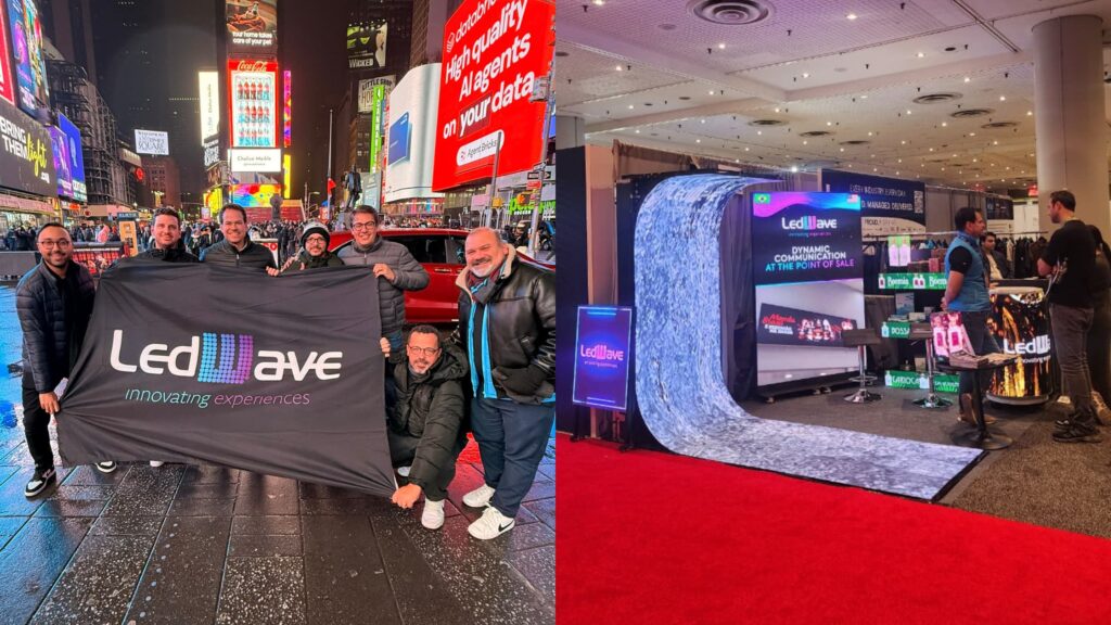 A LedWave encerrou sua participação na NRF Retail’s Big Show 2026, maior feira de varejo do mundo, reforçando sua presença internacional e consolidando-se como protagonista na digitalização do ponto de venda. Como única empresa brasileira do segmento de LED com estande próprio, apresentou soluções inovadoras de Retail Media e digital signage, incluindo painéis flexíveis, telas curvas e totens dupla face que permitem experiências imersivas personalizadas, reforçando o papel do LED como elemento estratégico para o varejo moderno.