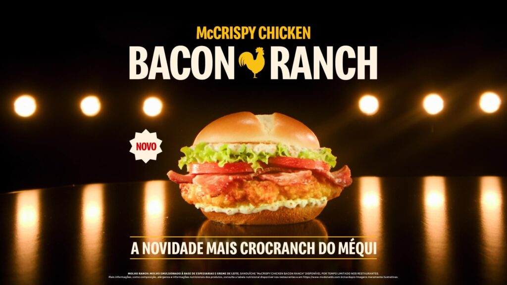 A partir de 12 de agosto, chega a todos os restaurantes do Brasil o McCrispy Chicken Bacon Ranch, a novidade mais “Crocranch” do Méqui. O lançamento traz toda a suculência de um filé feito com 100% peito de frango, empanado crocante, combinado com bacon defumado sequinho e o Molho Ranch, tudo isso no tradicional pão brioche.