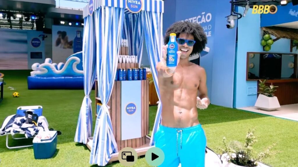 Em sintonia com o verão e com tudo o que os brasileiros mais amam, NIVEA SUN transformou a tarde dos participantes em um momento que uniu conscientização e entretenimento, tendo a piscina da casa como cenário central. A surpresa ficou por conta de Rafael Portugal, figura já querida pelo público, que ‘invadiu’ a casa caracterizado como “Salva Pele”. O momento uniu o humor do convidado à mensagem essencial de cuidado, garantindo que cada participante estivesse devidamente protegido antes de dar início a uma pool party exclusiva assinada por NIVEA SUN. A ação também faz parte da campanha “Amores Brasileiros de Verão” e marca a chegada da marca como responsável oficial pelo cuidado com a pele dos participantes, associando entretenimento ao compromisso com a proteção solar.