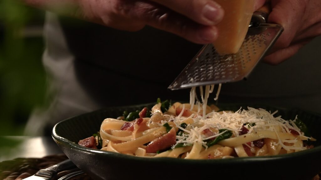 A peça avança com a locução detalhando cada ingrediente e preparo, enquanto sons como a água fervendo, o macarrão sendo mexido, o molho escorrendo e o queijo ralado ganham protagonismo. Ao despertar os sentidos apenas pelo som e pela imaginação, o filme surpreende ao revelar, no final, um prato de massa pronto e o chef por trás da receita: Ocacyr Junior, que perdeu a visão aos 23 anos, encontrou na gastronomia uma nova forma de ver o mundo.