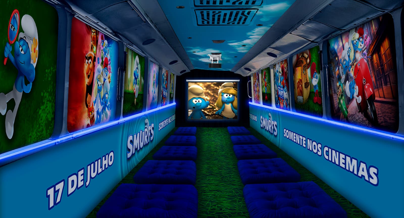 Dessa vez, o veículo não será apenas um meio de transporte com visual personalizado: por fora, o ônibus será envelopado com adesivo holográfico e iluminação em LED, remetendo à atmosfera mágica e lúdica do universo dos Smurfs. Por dentro, o público será surpreendido por uma customização completa, com almofadas, sistema de som e até projetor exibindo o trailer oficial do filme, em uma verdadeira sala de cinema improvisada. Dois promotores acompanharão a ação para garantir a melhor experiência possível para os passageiros e fãs da franquia.