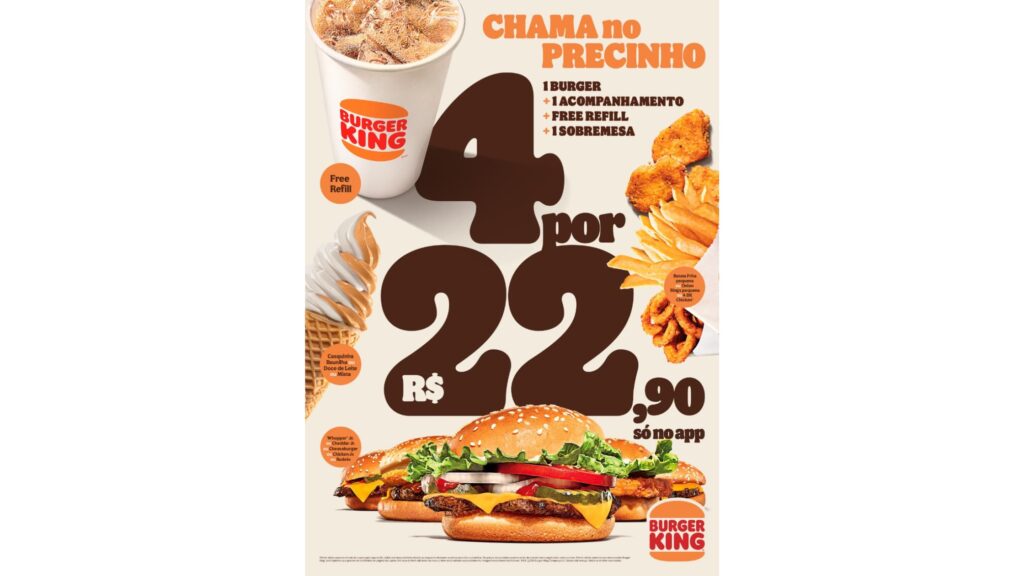 A oferta é válida mediante ao resgate do cupom disponível no aplicativo do BK.