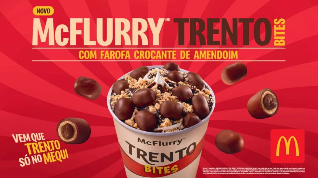O McFlurry Trento Bites tem pré-venda exclusiva no app do Méqui entre 26 de agosto e 1º de setembro, e chega aos restaurantes de todo o Brasil a partir de 2 de setembro.