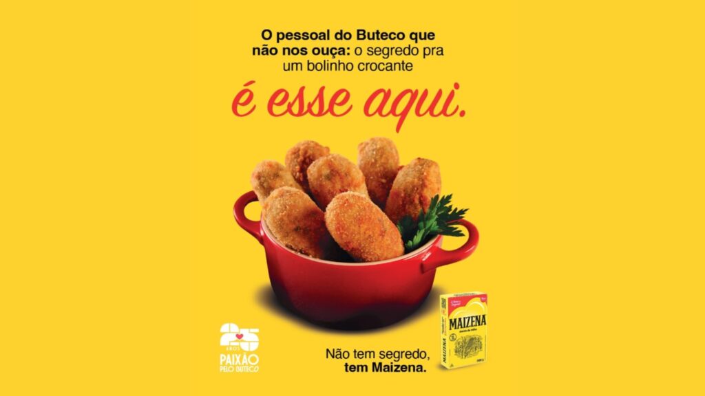 Presente pela primeira vez no Comida di Buteco, Maizena reforçou sua conexão com a cultura dos botecos não só por meio do desafio promovido dentro das cozinhas, mas também com presença visual nos bares participantes, se conectando com o consumidor através de experiências fora de casa. Com mais de 150 anos de história, a marca segue fortalecendo seu papel como ingrediente indispensável na cozinha brasileira, seja nas receitas já conhecidas ou se reinventando e inovando nos grandes momentos de celebração popular, como o Comida di Buteco.
