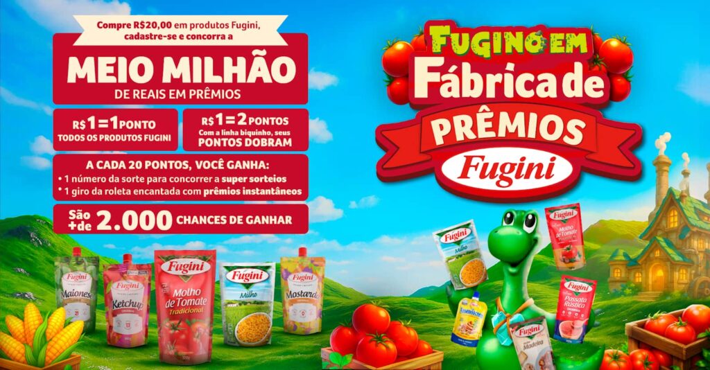 Inspirada nas tradicionais fábricas de Natal, a iniciativa transforma a experiência de compra em um jogo interativo e premiado. A cada R$ 20 em produtos Fugini, o consumidor cadastra o cupom fiscal no site oficial www.fabricadepremiosfugini.com.br ou via WhatsApp (16) 99429-1690, acumulando pontos que dão acesso à Roleta de Prêmios e números da sorte.