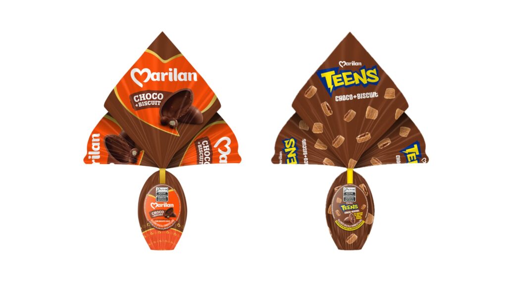 Entre os destaques estão o ovo Marilan Choco+Biscuit Maizena (140g), ovo de chocolate ao leite com pedaços de biscoito doce, que combina a cremosidade do chocolate com a crocância do tradicional biscoito Maizena Marilan, e o ovo Teens Choco+Biscuit (140g), ovo de chocolate ao leite com pedaços de snack Teens sabor chocolate, que une o chocolate à textura crocante do snack. As novidades levam para o formato sazonal combinações já conhecidas do consumidor, ampliando a presença das marcas na data.
