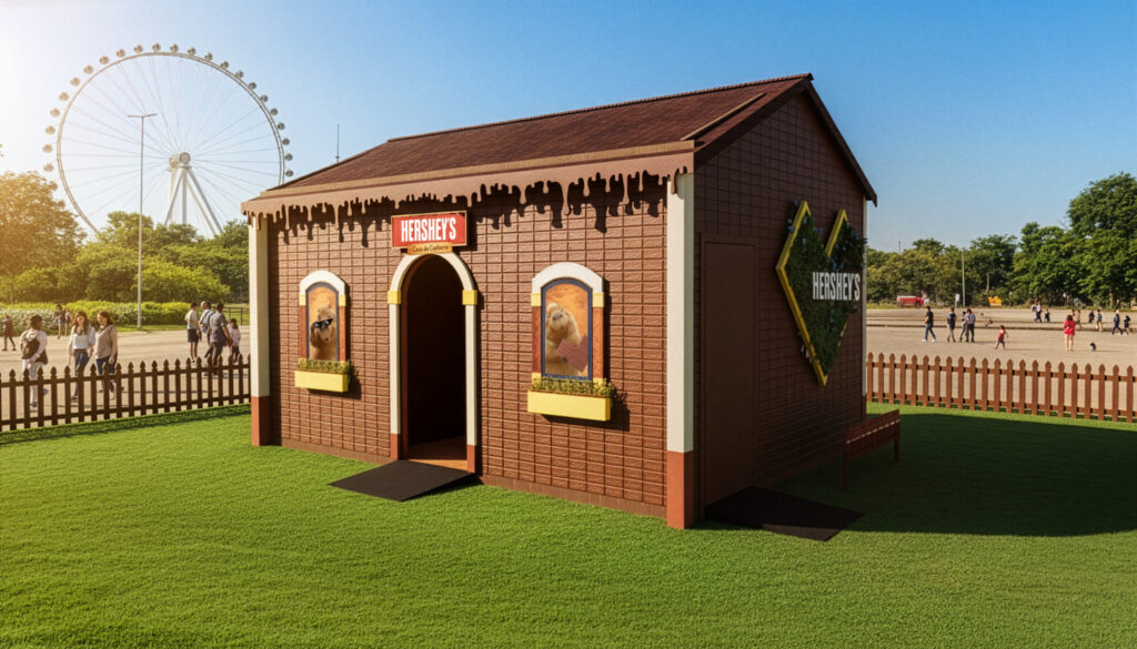 A atração convida o público a explorar a moradia da mascote, construída com “tijolinhos” que lembram os quadradinhos das barras de chocolate Hershey’s e cercada por pistas, objetos curiosos e referências espalhadas pelo quintal da personagem. Ali, os visitantes poderão se sentir parte do universo da mascote e vão ajudá-la a preparar a Páscoa perfeita.