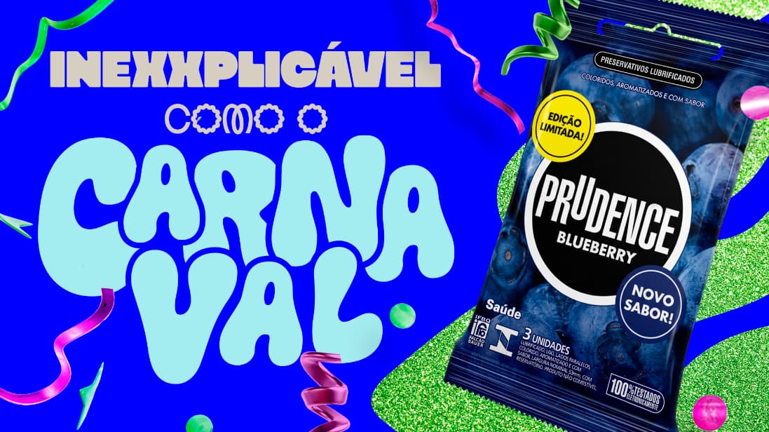 A Prudence, marca de preservativos da DKT South America, anuncia o lançamento da Prudence Blueberry, uma camisinha com sabor e aroma inspirados na irreverência e na intensidade do Carnaval brasileiro. O novo produto integra a campanha “Inexxplicável como o Carnaval”, que propõe uma conexão direta entre a experiência sensorial da camisinha e o espírito da folia, marcado pela liberdade de expressão, pela diversão e pela quebra de padrões.
