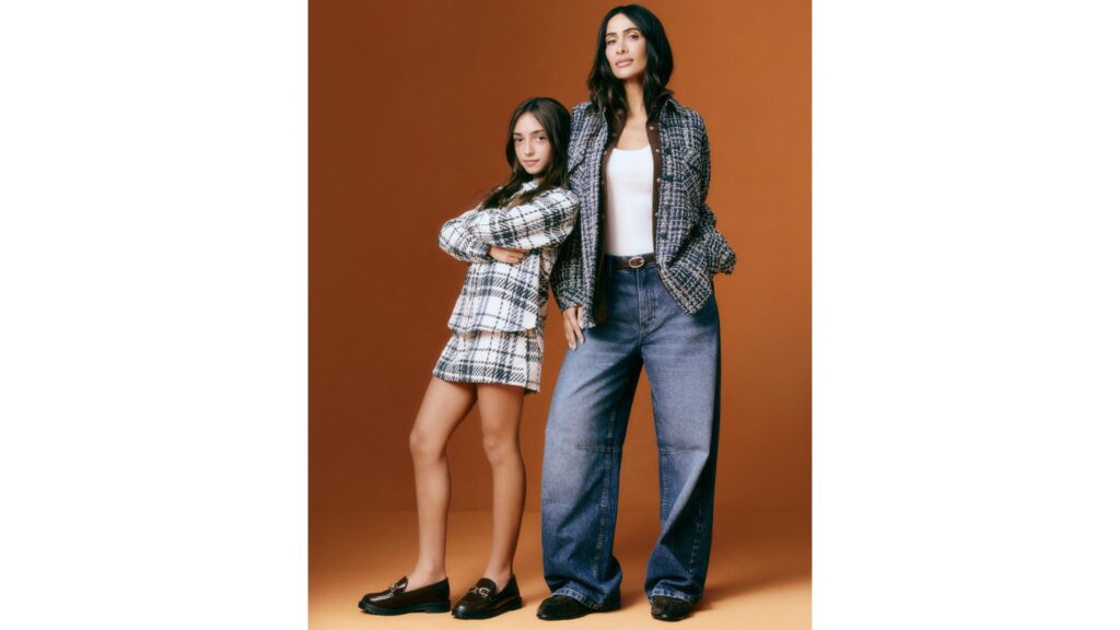 Em paralelo, o conceito de mini me, tendência que propõe versões coordenadas de looks entre adultos e crianças, surge de forma sutil, com peças que dialogam entre si sem recorrer ao óbvio do “igual”. A narrativa se estende à campanha, que traz Silvia e Bebela em cena com produções alinhadas.