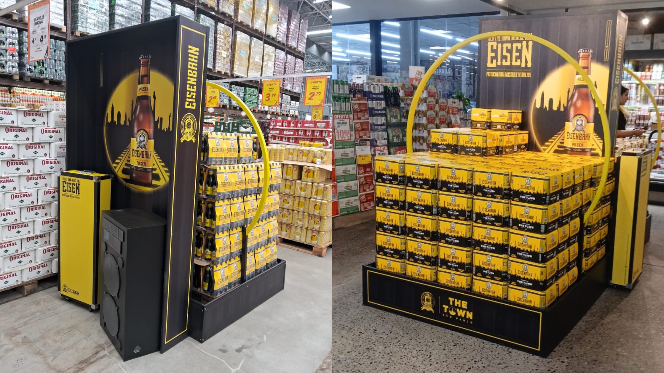 Em outros PDVs estratégicos do varejo como Carrefour, Atacadão, Sonda, Zaffari e PegPese, todos na região de Interlagos, entre os destaques das ativações estão a ilha interativa Play the Guitar, que simula cordas de guitarra em um ambiente cenográfico, a Eisenbahn Sphere, com uma esfera de LED que remete ao ícone visual do The Town, e a Disco Station, no formato de um toca-discos que acende luzes e reproduz trechos musicais ao girar do vinil. Além disso, a marca leva a ativação Crowd Surfing, que recria o momento icônico dos shows com uma garrafa Eisenbahn circulando sobre uma faixa de LED em meio a imagens de público com os braços levantados. Para fechar, seguindo a ação Compre e Ganhe citada anteriormente, em PDVs estratégicos o consumidor também poderá levar um porta lata ou garrafa de neoprene personalizado após realizar compra de R$ 30,00 em produtos Eisenbahn.