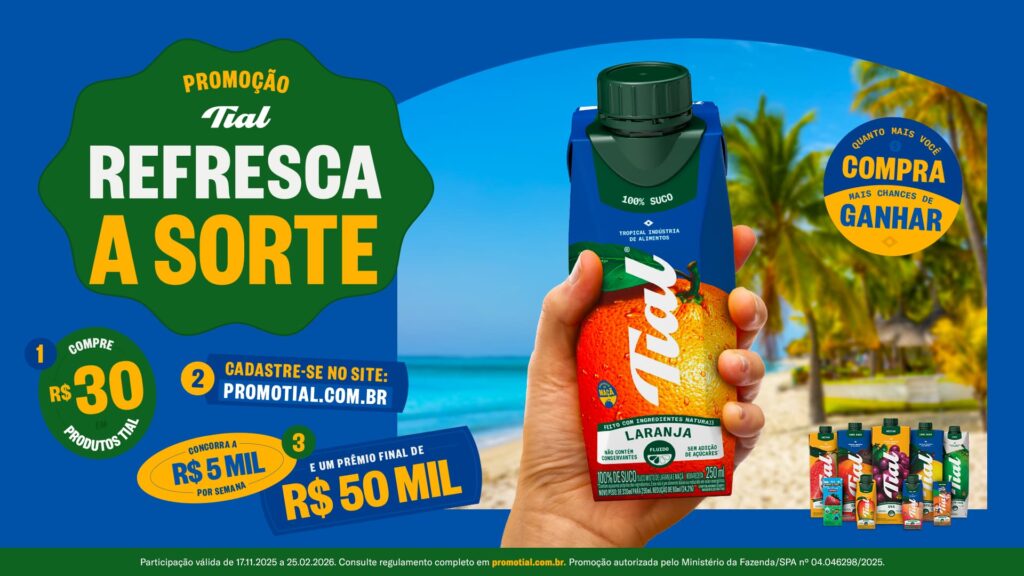 “Tial acredita que o verão é o momento perfeito para se conectar com o público de forma leve, alegre e próxima. A promoção traduz essa energia: queremos reforçar presença nas prateleiras, incentivar o consumo de bebidas saudáveis no calor e, ao mesmo tempo, criar uma conversa direta com os nossos consumidores, mostrando que Tial está com eles dentro e fora do copo”, comenta Bernardo Erse, diretor de marketing da Tial. “É uma ação que une brand building e sell out, ampliando visibilidade e estimulando giro no varejo”, completa.