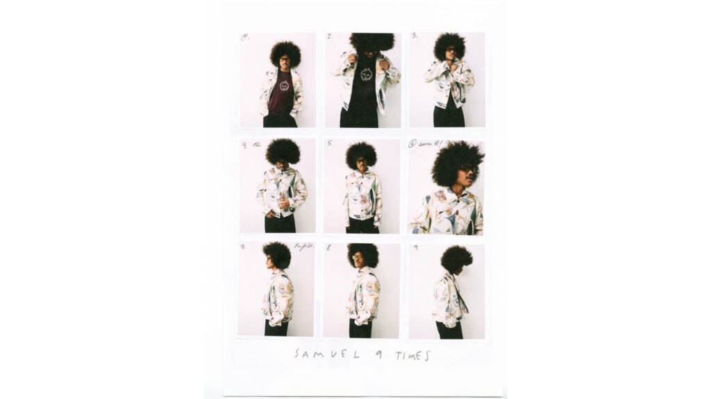 Inspirada no guarda-roupa pessoal de Samuel, a coleção reflete uma estética dos anos 70 e incorpora elementos de sua produção artística por meio de grafismos aplicados em peças selecionadas. Entre os destaques está a releitura de uma camisa de sua avó, além de detalhes funcionais e simbólicos, como um bolso para pincéis integrado em algumas peças.
