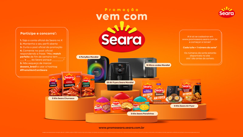 Marketing Promoção “Vem com a Seara” entra na última fase com o sorteio de mais de 40 eletroportáteis Kits contendo eletrodomésticos Mondial e produtos Seara fazem parte de premiação em ação exclusiva... setembro 3, 2025 | Por Redação